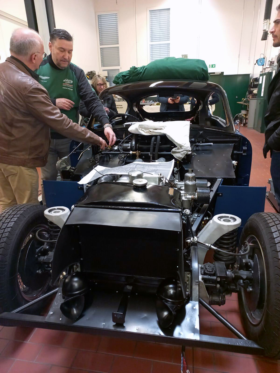 A seguire, il gruppo ha avuto accesso alla officina di Emil Frey Classic, vero cuore operativo dell’azienda. La visita, guidata in italiano dal responsabile officina Andrea Trigili, ha permesso di comprendere da vicino il lavoro di manutenzione e restauro, suscitando grande interesse e numerosi apprezzamenti tra i partecipanti.